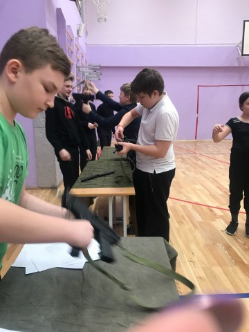 В рамках мероприятий, посвященных Дню защитника Отечества, совместно с объединением «Крылья Родины» (парашютный спорт, руководитель Третьякова Ольга Вячеславовна) МАУ ДО ДДТ среди обучающихся 6-8-х классов была проведена военизированная эстафета «Десантная полоса». Комбинированная полоса препятствий состояла из нескольких этапов: приземление, полевая укладка, огневой рубеж. Ребята увидели, как складывается настоящий парашют, и попробовали сами выполнить отдельные элементы укладки, снарядить ПМ учебными патронами, выполнить неполную разборку - сборку ПП-91 «Кедр».