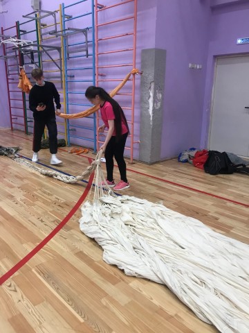 В рамках мероприятий, посвященных Дню защитника Отечества, совместно с объединением «Крылья Родины» (парашютный спорт, руководитель Третьякова Ольга Вячеславовна) МАУ ДО ДДТ среди обучающихся 6-8-х классов была проведена военизированная эстафета «Десантная полоса». Комбинированная полоса препятствий состояла из нескольких этапов: приземление, полевая укладка, огневой рубеж.