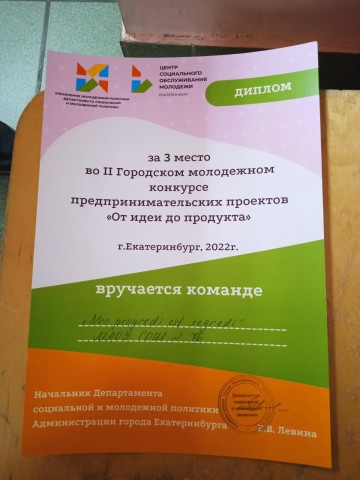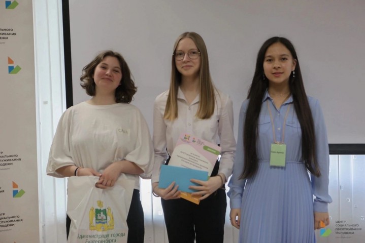 Ким Арина(8б), Сентябова Светлана (8в), Кузьмина Александра(8а), руководитель, учитель технологии, Ваулина Наталья Васильевна с победой в городском молодежном конкурсе предпринимательских проектов "От идеи до продукта"