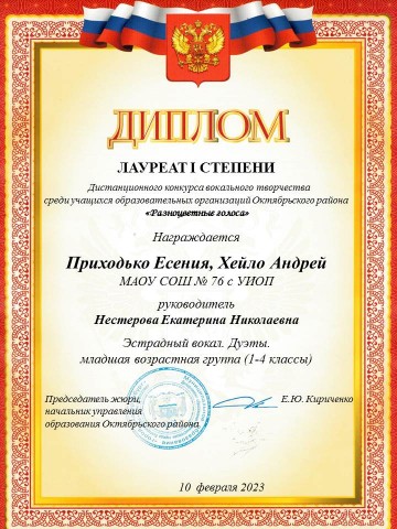 Вокальный дуэт в составе Приходько Есения и Хейло Андрей
