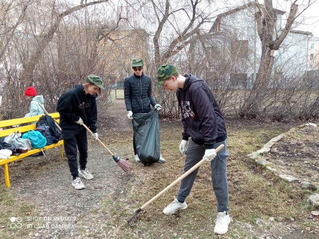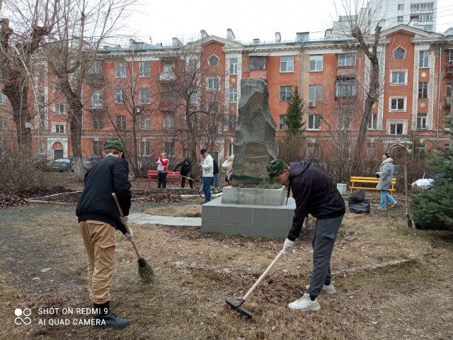 Юноармейский отряд «Крылья» ( руководитель Луткова Т.В., кл. рук Подчиненова В.И.) 22 апреля 2023г. принял участие в субботнике по уборке территории у обелиска уральцам-первогврадейцам на ул.Куйбышева, 48г.