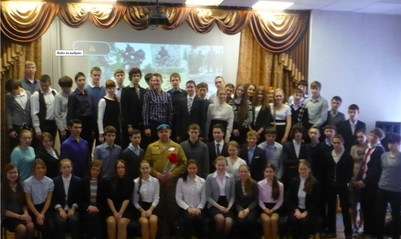 Встреча старшеклассников школы с ветераном войны в Афганистане Мезенцевым Владимиром Анатольевичем состоялась в актовом зале школы 18.02.2014г.