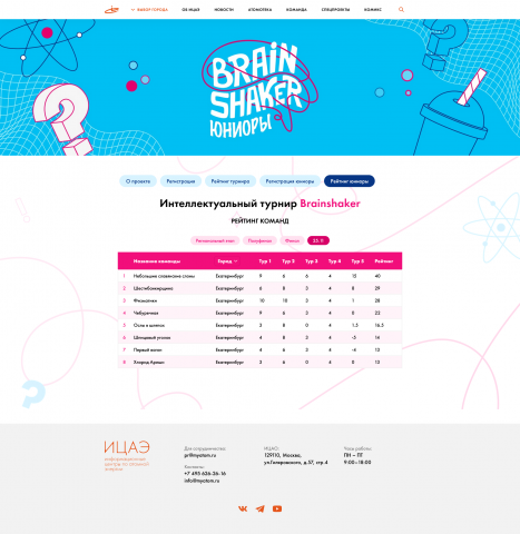 «BrainShaker. Юниоры» — это знакомый посетителям Информационных центров по атомной энергетики (ИЦАЭ) командный интеллектуальный турнир BrainShaker, только для школьников. В юниорской версии он включает пять туров, справиться с которыми помогут знания о массовой культуре и из разных научных областей.