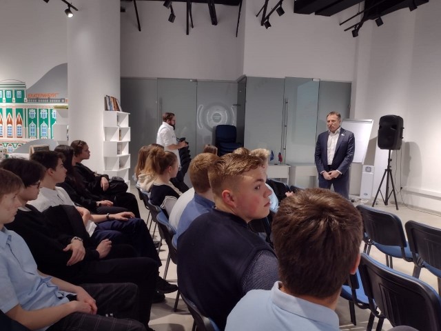 8 ноября 2023 г. в Штабе общественной поддержки ЕР по адресу г. Екатеринбург, ул. Куйбышева, 44 Д, Бизнес-центр «Панорама», учащиеся 9-10 классов МАОУ СОШ №76 прослушали лекцию «О Героях России Z» с участием депутата ЗС СО Вегнером В. М.