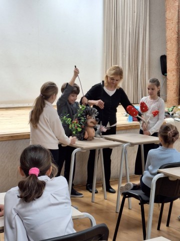 4 декабря 2023г в преддверии Международного конкурса по литературному чтению «Жар-птица» четвероклассники вместе с артисткой Екатеринбургского театра кукол Ириной Кузьминой окунулись в мир сказов П.П.Бажова.