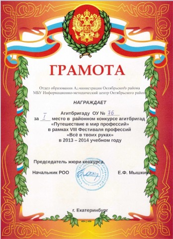 Поздравляем агитбригаду школы № 76 с победой (1 место) в районном конкурсе агитбригад «Путешествие в мир профессий» в рамках VIII Фестиваля профессий «Всё в твоих руках» !