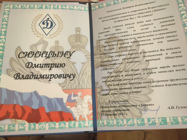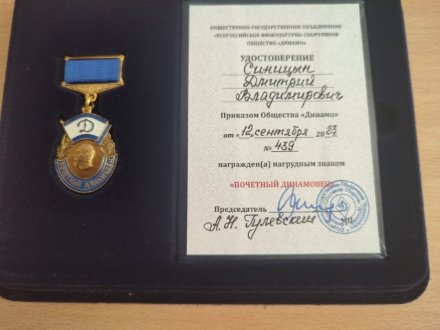 Учителя физической культуры МАОУ СОШ № 76 Синицына Дмитрия Владимировича с присвоением звания "Почетный динамовец"!
