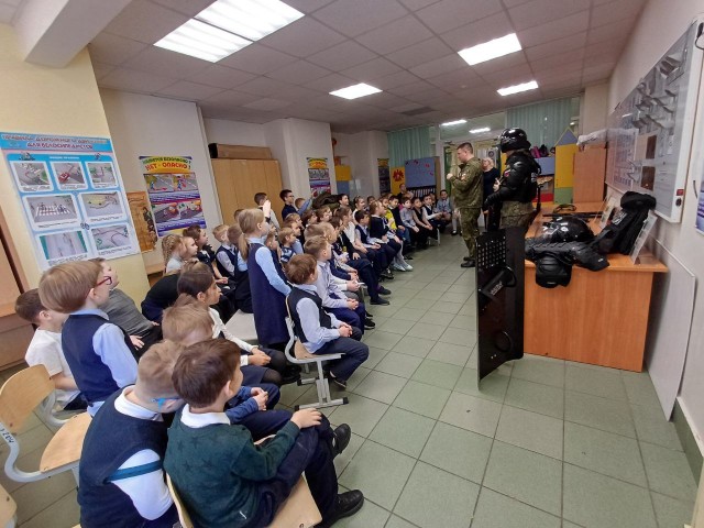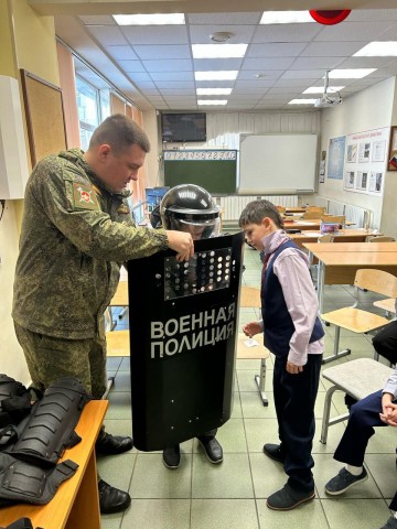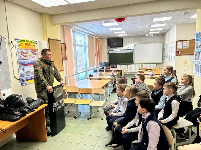 Во время урока дети с интересом слушали военных полицейских и задавали интересующие вопросы по данной тематике.