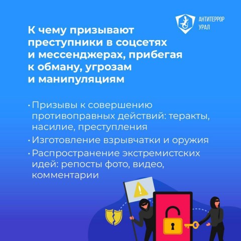 ️В социальных сетях и мессенджерах возросло количество провокационных сообщений, содержащих призывы к террористической деятельности и другим преступлениям. Особенно подвержены влиянию преступников-вербовщиков дети и подростки.