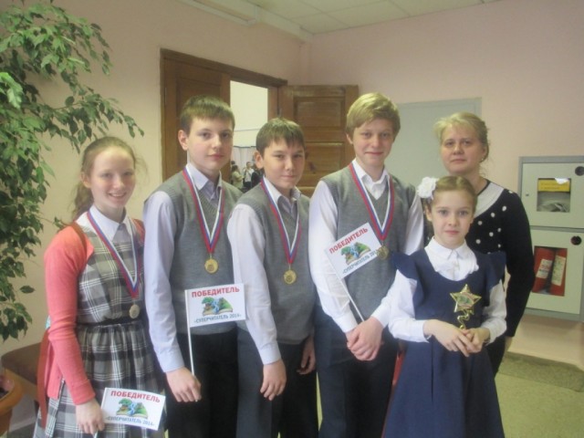 Команду 7 «В» класса школы № 76: Жирову Елену, Колесникова Игоря, Лапина Дмитрия, Шеменеву Екатерину и Щукина Владислава за I место в городском туре фестиваля «Суперчитатель» - 2014 в номинации «Книговеды». Литературный конкурс «Мир книг Владислава Петровича Крапивина» (викторина, логическая цепочка, отрывок из произведения, вопросы).
