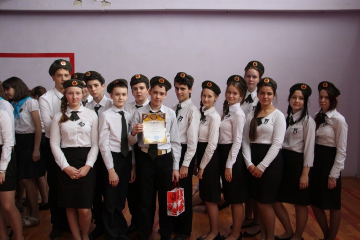 Смотр строя и песни, посвящённый 70-летию Победы в Великой Отечественной войне, состоялся 11.02.2015 в спортивном зале школы.