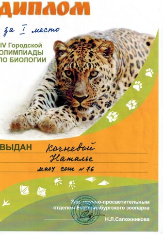 Поздравляем победителя IV Городской олимпиады по биологии Кочневу Наталью!