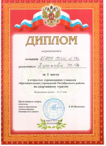 I место - МАОУ СОШ № 76, руководитель Луткова Татьяна Викторовна,