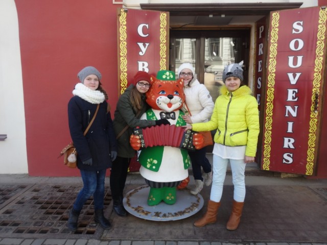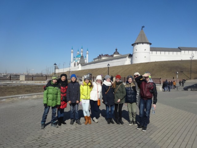 В весенние каникулы учащиеся 6 а класса ездили в г. Казань. Поездка была очень увлекательной и интересной. Ребята познакомились с историей древнего города, посетили самые яркие достопримечательности: Казанский Кремль, мечеть Кул-Шариф, Благовещенский собор, Раифский монастырь. Увидели, как строится современная Казань, новейшие спортивные сооружения, готовые летом 2015 года принять Чемпионат мира по водным видам спорта. Прикоснулись к национальной культуре, посетив музеи татарского композитора С. Сайдашева, поэта М. Джалиля и художника К. Васильева. Гуляя по «Казанскому Арбату», улице Баумана, не уставали удивляться красоте архитектуры каждого дома, овеянного историей, легендами, мифами. На память каждый увез фигурку знаменитого «Казанского кота», чьи потомки до сих пор охраняют Эрмитаж и, конечно, татарский Чак-чак.