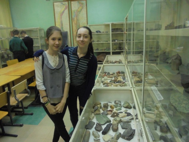 На экскурсии сразу в двух школьных музеях лицея № 130 побывали учащиеся 7-а класса вместе с классным руководителем Могильниковой Анной Михайловной. Первый музей - геологический. Общее количество образцов — 2500.