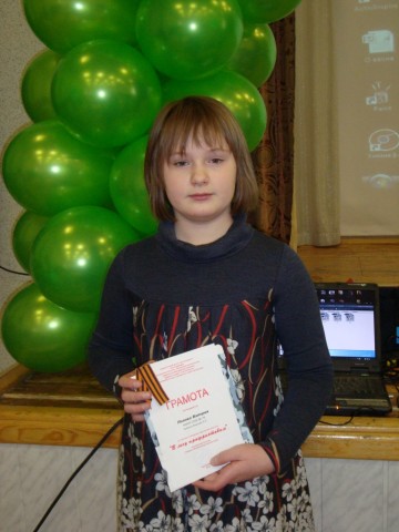 Поздравляем Артемьеву Елизавету, ученицу 3-б класса МАОУ СОШ №76, занявшую I место в номинации «Индивидуальное художественное чтение» и её педагога Райкову Светлану Германовну. Лиза награждена Дипломом от Комитета по молодежной политике Администрации г. Екатеринбурга, памятными подарки от Библиотечного Центра «Екатеринбург» и билетами для бесплатного посещения Екатеринбургского зоопарка.