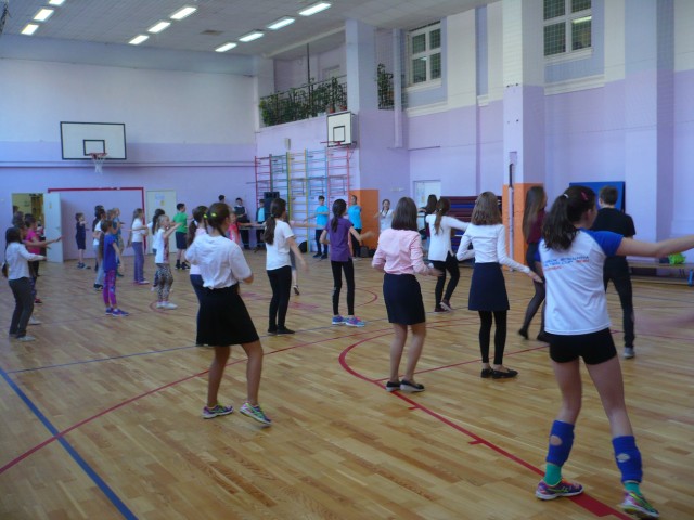 Позитивно и ярко при поддержке районного Совета старшеклассников Октябрьского района (РСС) и студентов одного из сильнейших педагогических отрядов УрГПУ «Амплитуда» в школе 76 21 октября 2015 года состоялась октябрьская зарядка. Эта социальная акция направлена на популяризацию среди подростков здорового образа жизни, занятий спортом. В роли ведущих октябрьской зарядки дебютировали ученики 9-б класса, члены РСС Дорофеев Степан и Сибирякова Рита. В спортивном мероприятии приняли активное участие учащиеся 5,8,9,10-х классов, волейболистки 7-в класса. Помощь в организации участников зарядки оказали учителя физической культуры Андриевских Ирина Сергеевна, Синицын Дмитрий Владимирович, зам.директора по ВР Старцева Ю.В.