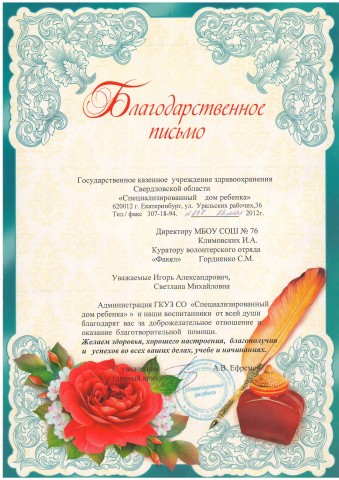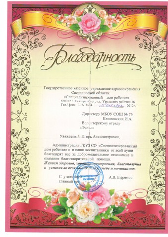 Благодарность волонтерскому отряду "Факел"