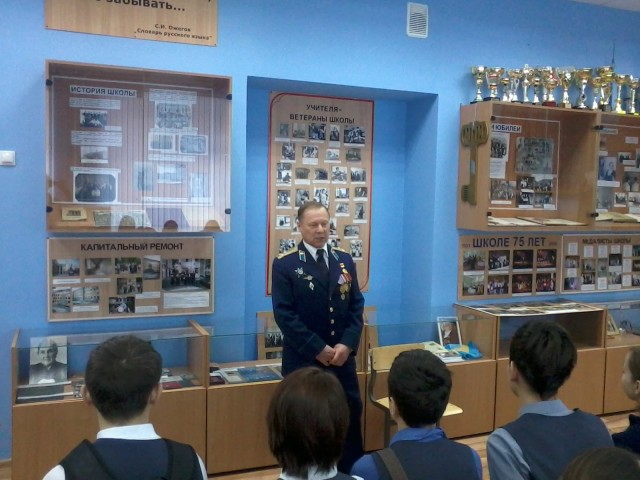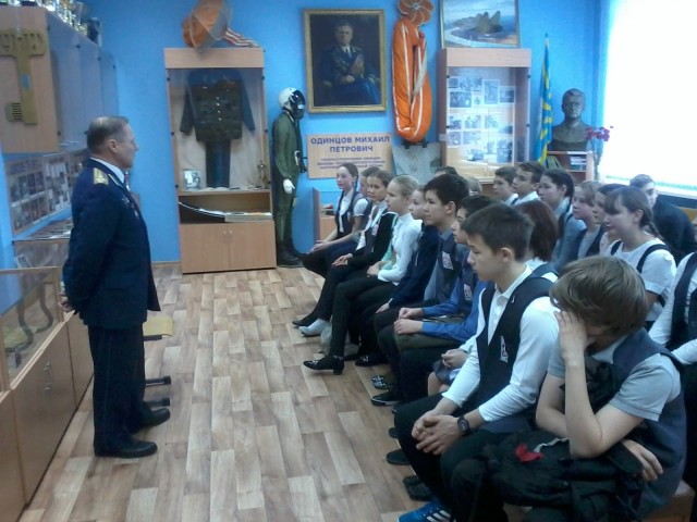 Учащиеся 7 «В» класса (редакция школьной газеты «Перекрёсток») вместе с классным руководителем (Константиновой О.А.) 22.11.2016г. посетили музей, созданный в школе № 36, где увидели выставку, посвященную 95-летию дважды Героя Советского Союза Одинцова Михаила Петровича – выпускника этой школы.