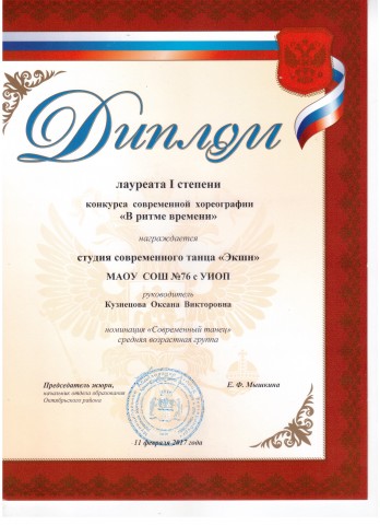 Мы сердечно поздравляем с заслуженной победой студию современного танца «Экшн» школы № 76. Руководитель: Кузнецова Оксана Викторовна