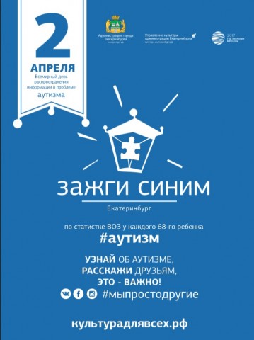 2 апреля 2017 года в Екатеринбурге состоится общегородская акция «Зажги синим», посвященная Всемирному дню распространения информации об аутизме.