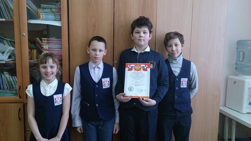 Поздравляем команду 4а класса в составе: Борисенко Полины, Коновалова Ярослава, Мацнева Ивана и Черкасова Максима, ставшую призёром районного турнира юных математиков, под руководством Пермяковой Веры Николаевны и успешно выступившую на городском конкурсе.