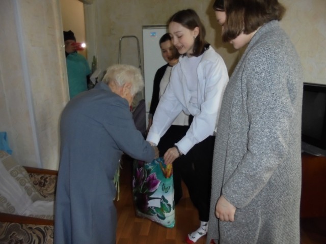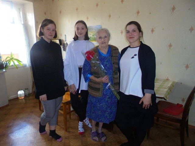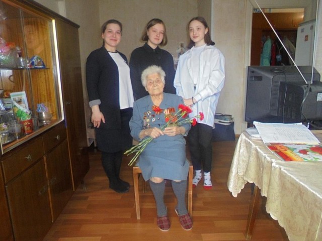 В преддверии Дня Победы ученики 8-в класса вместе с учителем русского языка и литературы Хиевой О.А., сотрудником Центра социального обслуживания населения Октябрьского района поздравили ветеранов Великой Отечественной войны с наступающим праздником на дому.