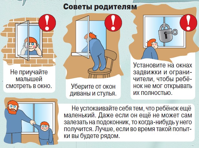 - крепко фиксируйте ребенка, находясь с ним около открытого окна; будьте готовы к резким движениям малыша;