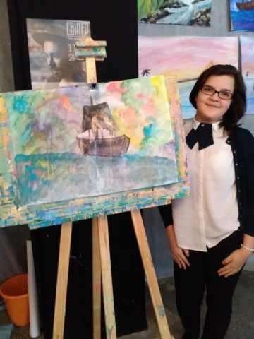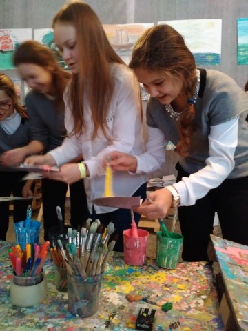 Помимо выставки на площадке есть необычное место – творческая мастерская. Каждый желающий может нарисовать картину как красками, так и фломастерами. И мы, конечно, воспользовались этой уникальной возможностью и под впечатлением выставки постарались создать свое море.
